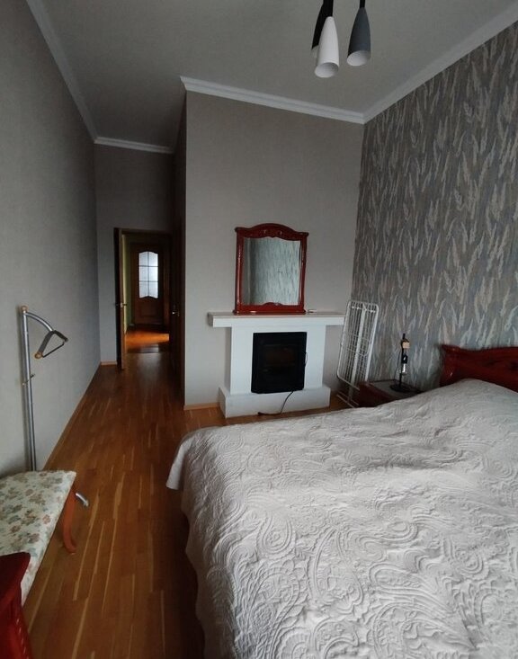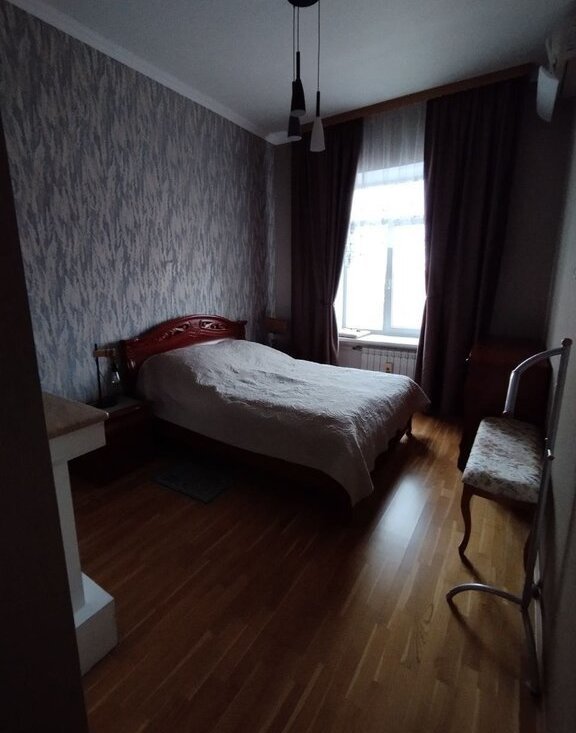 В квартире свежий ремонт, железная дверь с 3 замками, стеклопакеты, кондиционеры, есть все необходимое для заселения. Три комнаты, кухня, совмещенный санузел, гардеробная. Посудомоечная и стиральная машинки, газовая колонка, холодильник, газовая плита, микроволновка, телевизор.