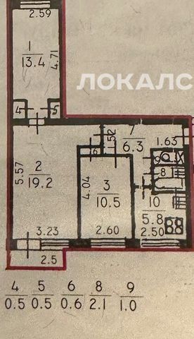 Общая площaдь — 59.9 м², жилая — 43,1 м², кухня — 5.8 м².