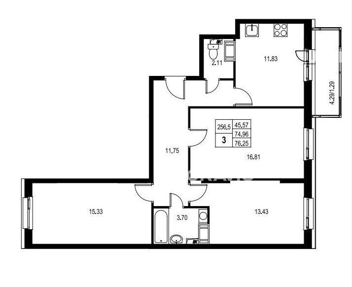 3-комнатная квартира: Санкт-Петербург, проспект Ветеранов, 169к6 (77 м²)