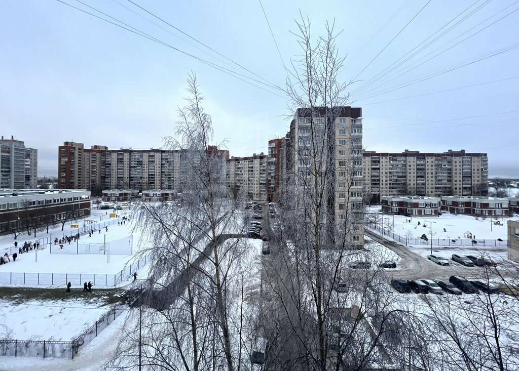 Панельный дом 1986 года постройки, чистая парадная с лифтом, придомовая территория с детскими и спортивными площадками. Много свободных мест для парковки. Во дворе школа № 574 и детский сад № 12.