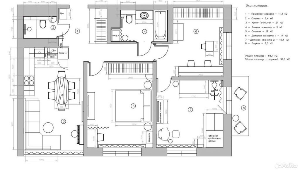 3-комнатная квартира: Санкт-Петербург, Среднерогатская улица, 10к1 (88 м²)