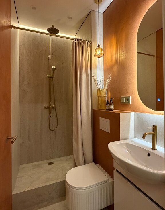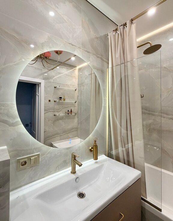 Ремонт делали для себя, продаем в связи с расширением. Применены качественные материалы: инсталляции ТЕСЕ, теплый пол Termo, микроцемент, паркетная доска, крупноформатный керамогранит. Есть разнообразные подсветки для разных сценариев освещения и атмосферы.