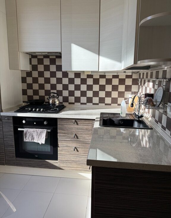 - посудомойка, стиральная машина, встроенный холодильник, электрическая духовка, газовая варочная поверхность, два телевизора. Провода для интернета тоже, надо будет только подключить свой договор.