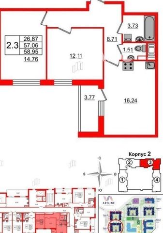3-комнатная квартира: Санкт-Петербург, Торфяная дорога, 15к1 (57 м²)