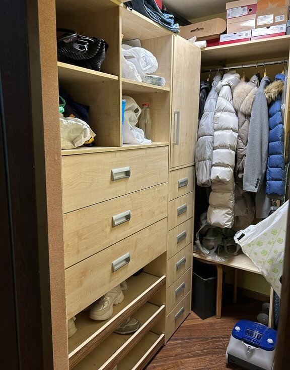 В квартире есть гардеробная и встроенный шкаф в прихожеи.