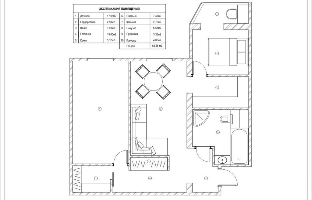 3-комнатная квартира: Санкт-Петербург, Товарищеский проспект, 32к2 (65.6 м²)