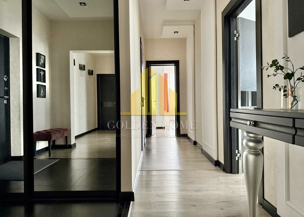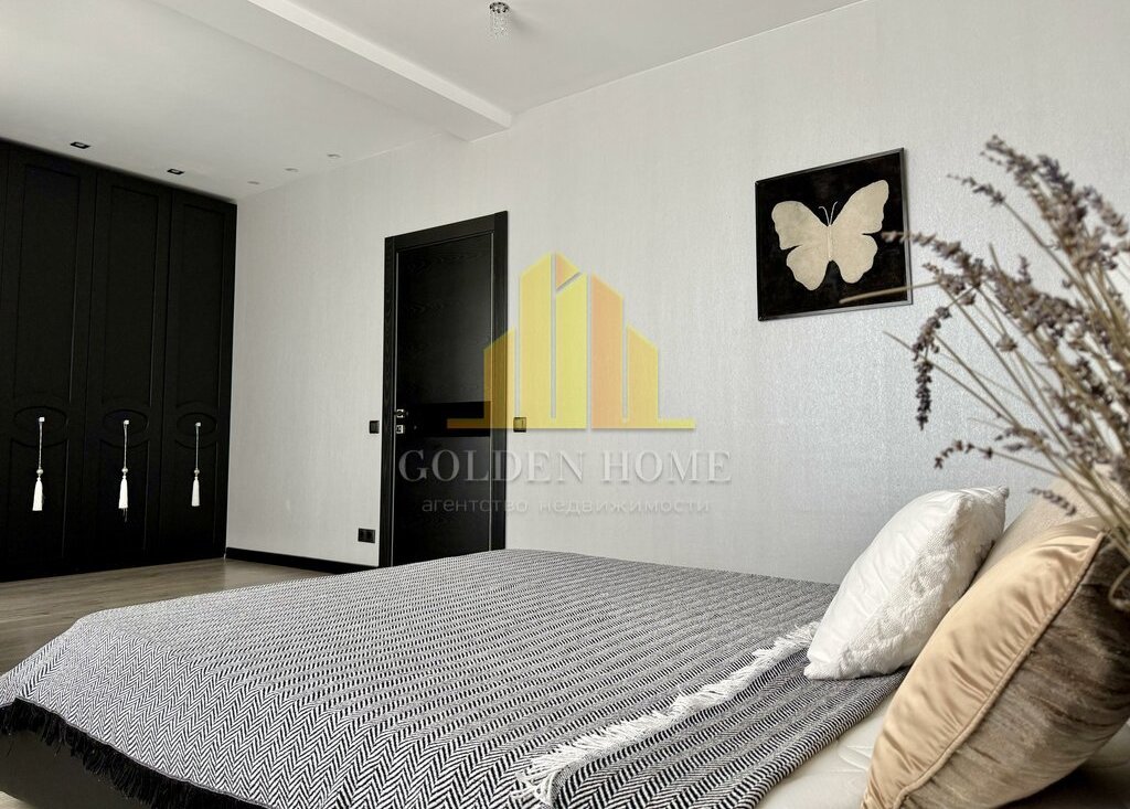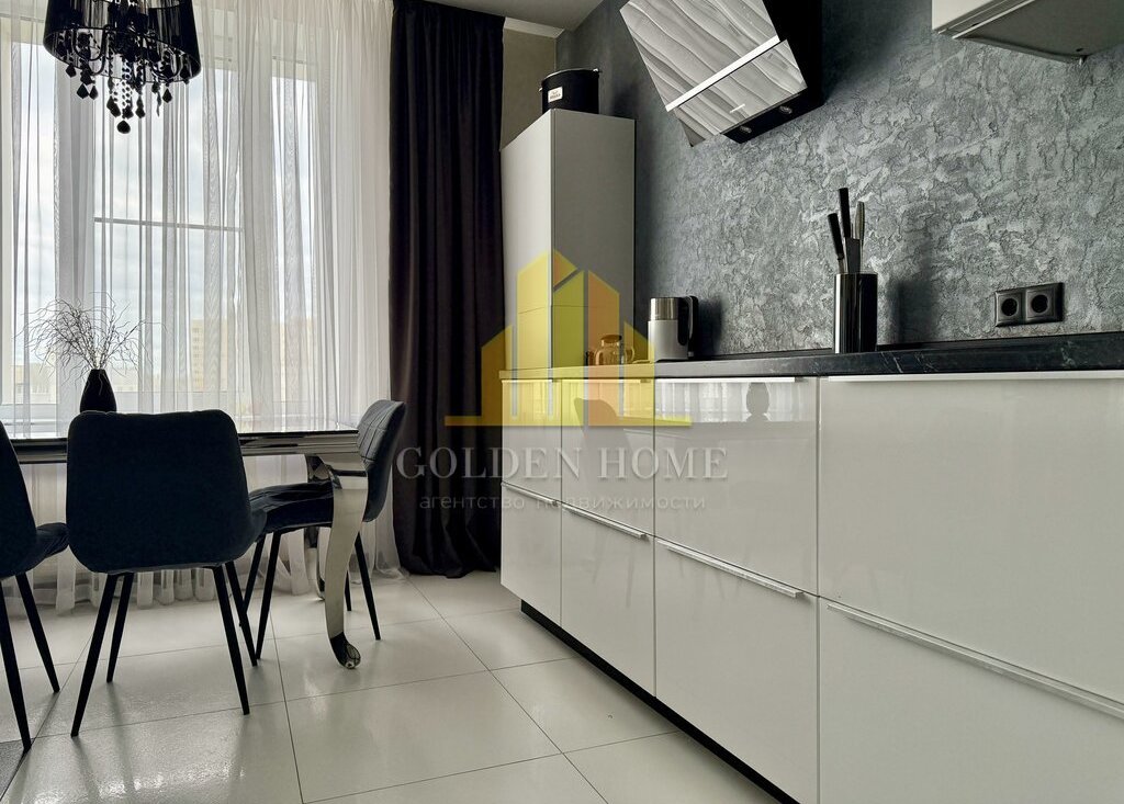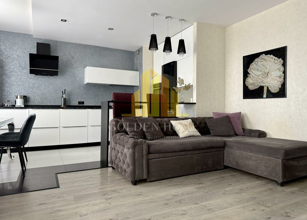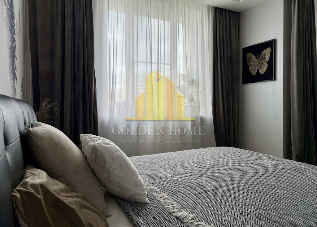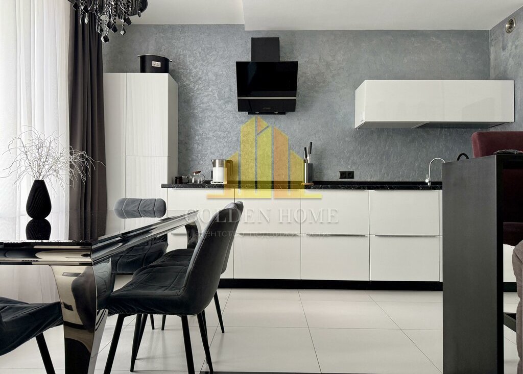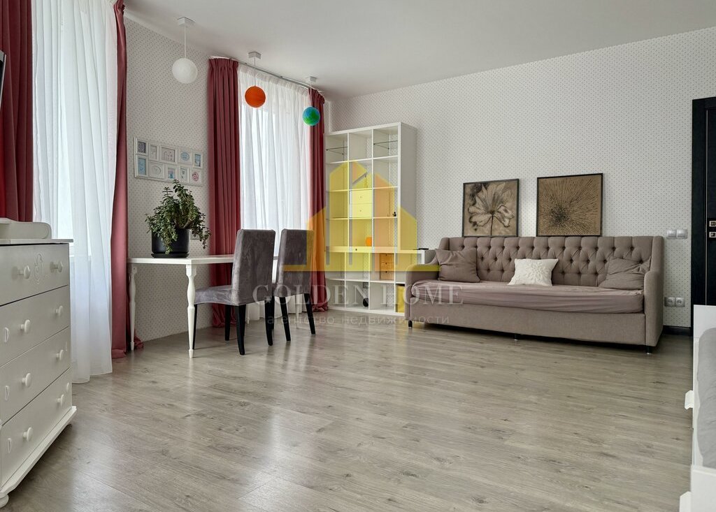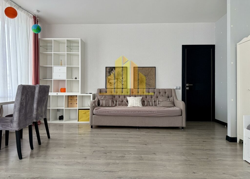 Квартира включает просторную кухню-гостиную, спальню, детскую комнату, лоджию с двумя выходами, где расположены диванчики с местами для хранения, а также два санузла: с ванной и душевой кабиной. Квартира полностью подготовлена и оснащена всем необходимым для комфортного проживания.