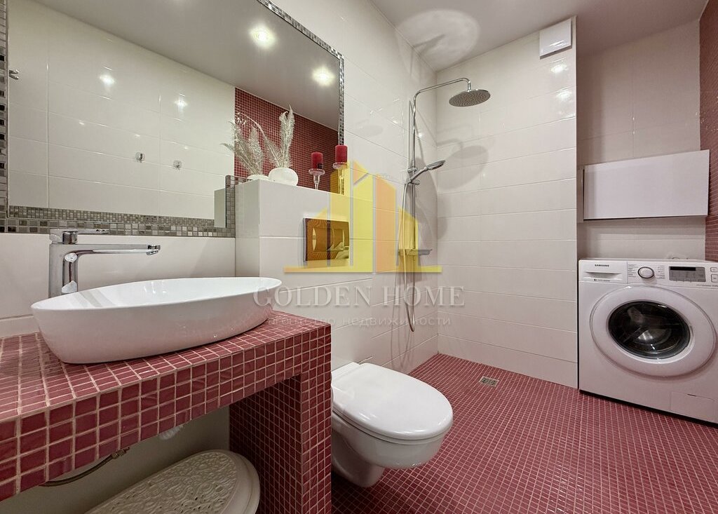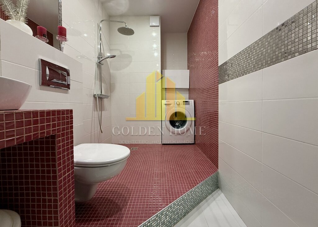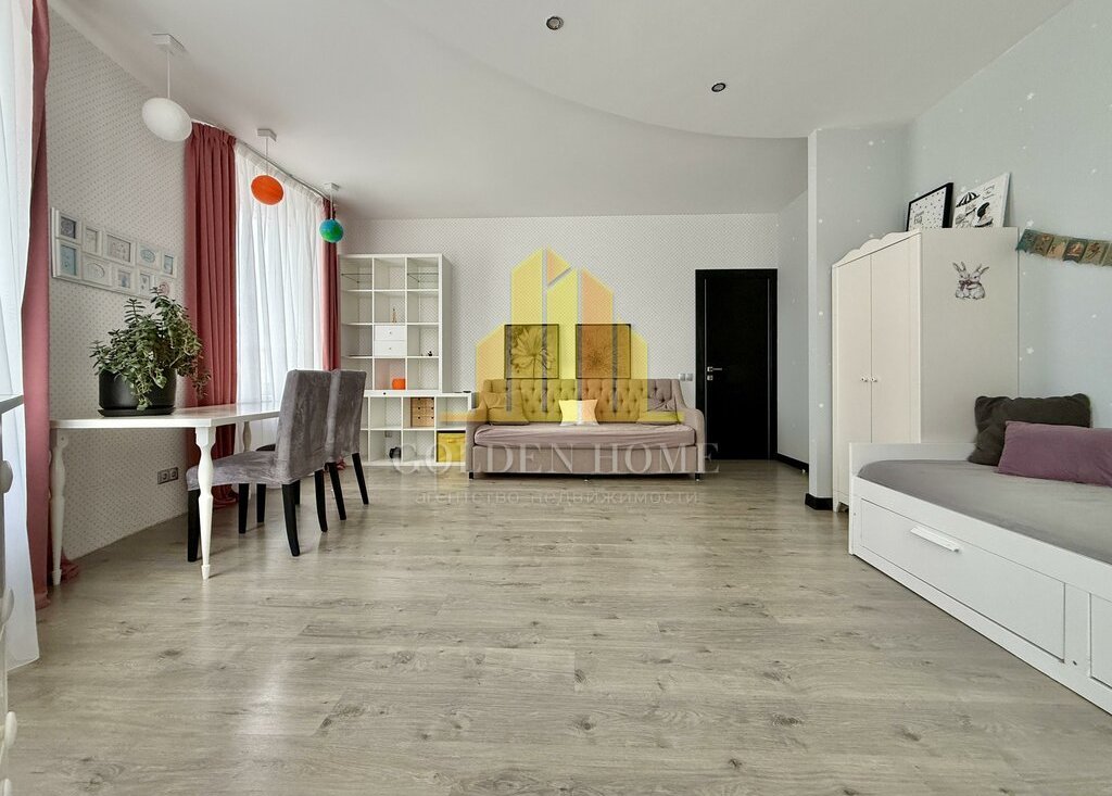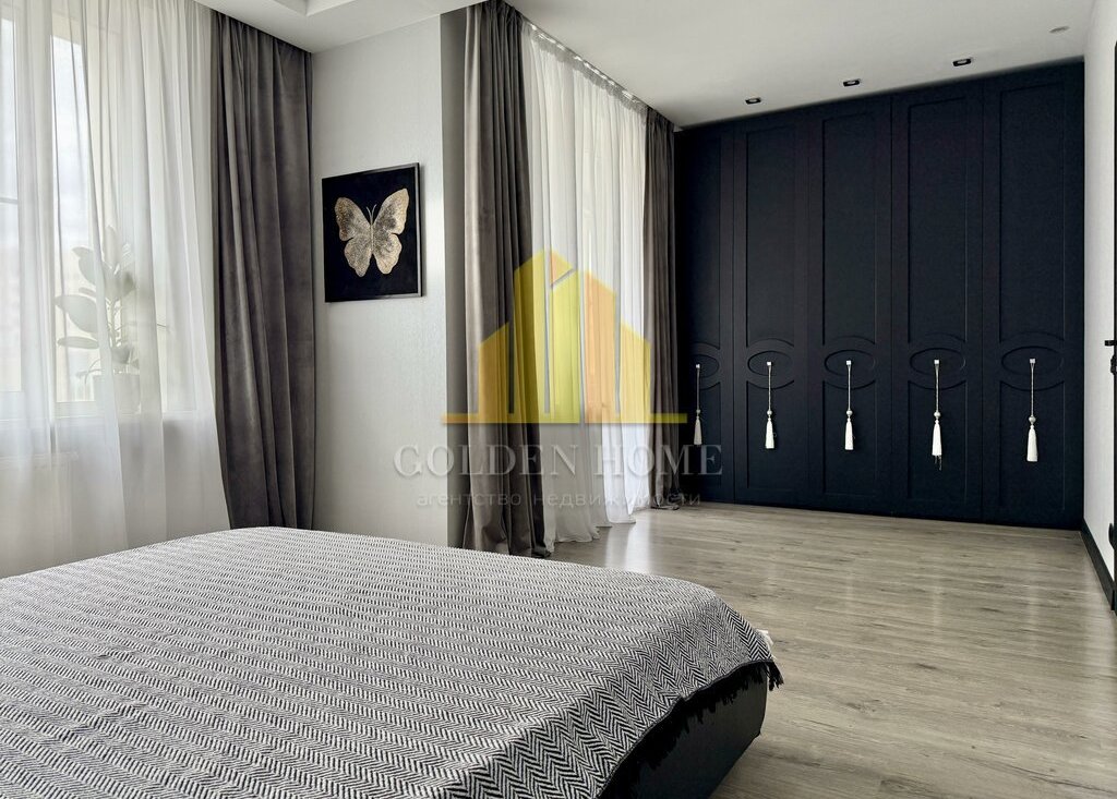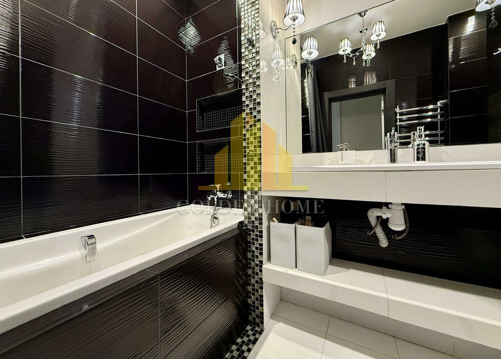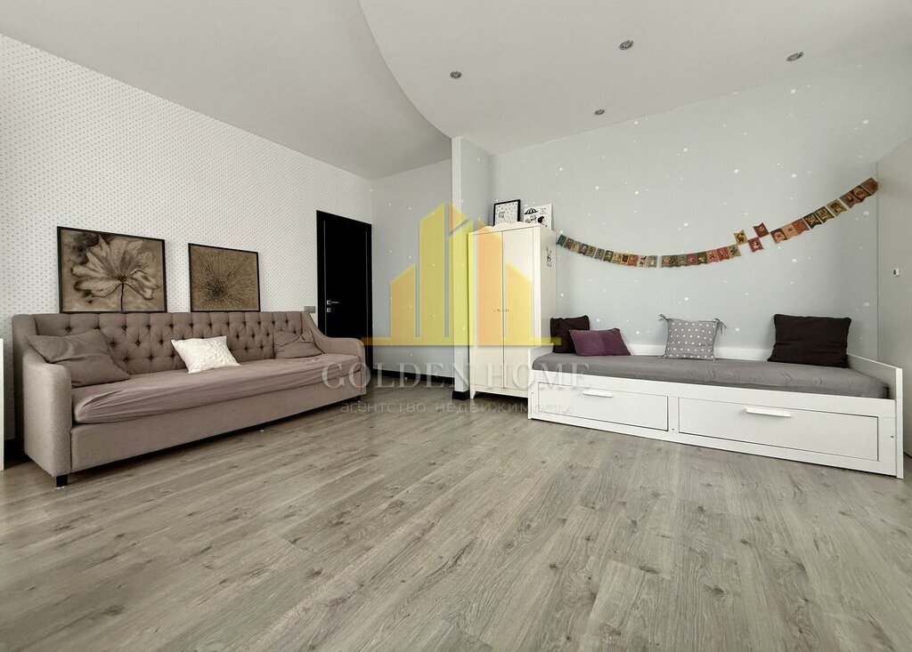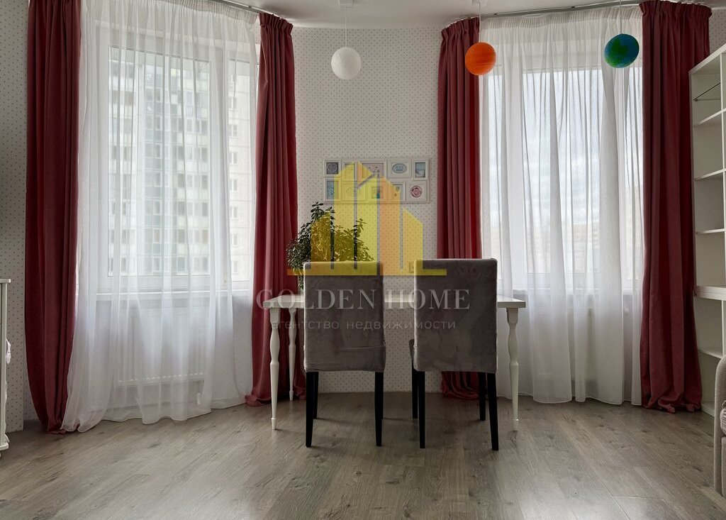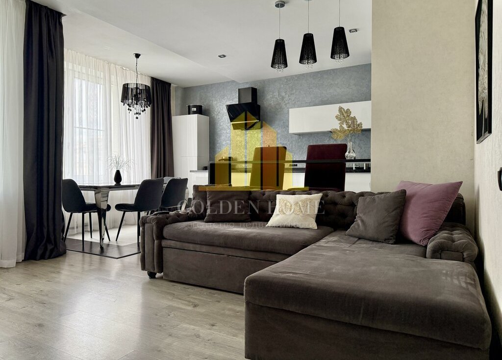 Квартира включает просторную кухню-гостиную, спальню, детскую комнату, лоджию с двумя выходами, где расположены диванчики с местами для хранения, а также два санузла: с ванной и душевой кабиной. Квартира полностью подготовлена и оснащена всем необходимым для комфортного проживания.