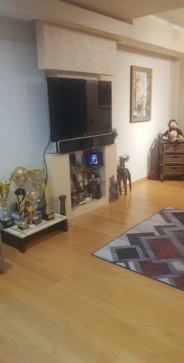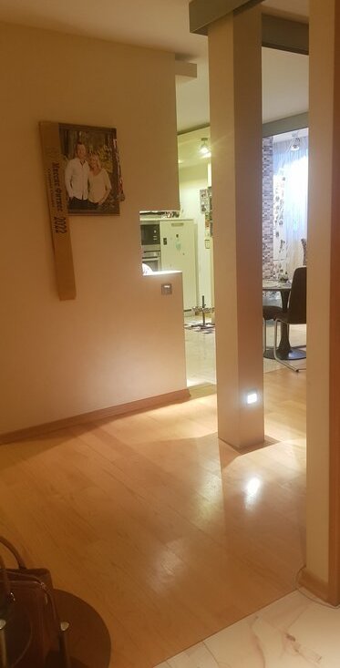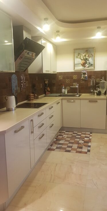 Дизайнерский ремонт. Все материалы импорт и качество. Плитка Италии, сантехника Франция и Германия, бытовая техника Германии, мебель Италия и Германия, пол натуральный паркет. На кухне стеклянные двери из пескоструя, привезены из Италии. Подоконники из натурального камня. Окна эркерные, отделка дерево. Стены: дизайнерская штукатурка, в комнатах вставки из римских обоев. Многие элементы дизайна сделаны на заказ. Есть потолочная подсветка. Электрика интересная, можно играть светом) Шкафы встроенные, вместительные. Есть скрытый сейф в квартире. Аквариум 500 л с экзотическими рыбами, вечером красиво работает подсветка, автокормушка, естественное увлажнение квартиры. Кухня, коридор и санузлы с подогревом пола. Стиральная машина Mile стоит в подсобном помещении с дверью, там же есть полки для хранения белья, есть свет. Ремонт делали для себя, один собственник, никогда не сдавалась.