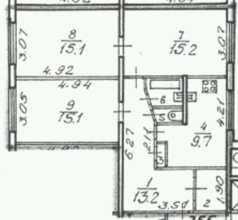 ✨️ Ещё по квартире: все комнаты по 15 метров, правильной формы 3×5