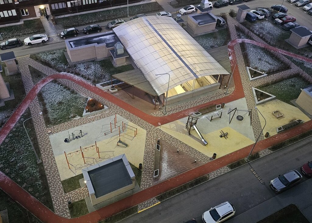 Огороженная территория жилого комплекса оборудована тремя детскими и спортивными площадками с мягким, экологичным покрытием. Детские игровые комплексы имеют оригинальный дизайн.