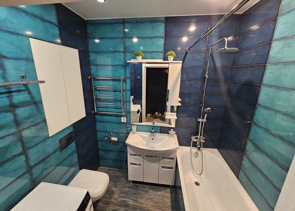 В квартире выполнен качественный ремонт. В квартире есть один совмещенный и один отдельный санузел. Также имеется лоджия, где можно обустроить место для отдыха.