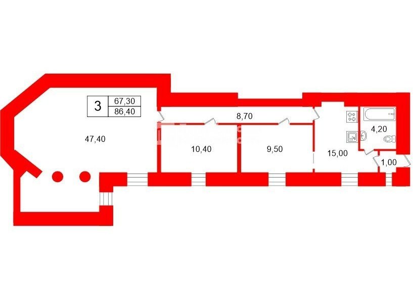 · Отдельная комната — 10,4 м2 - спальня, детская или кабинет.