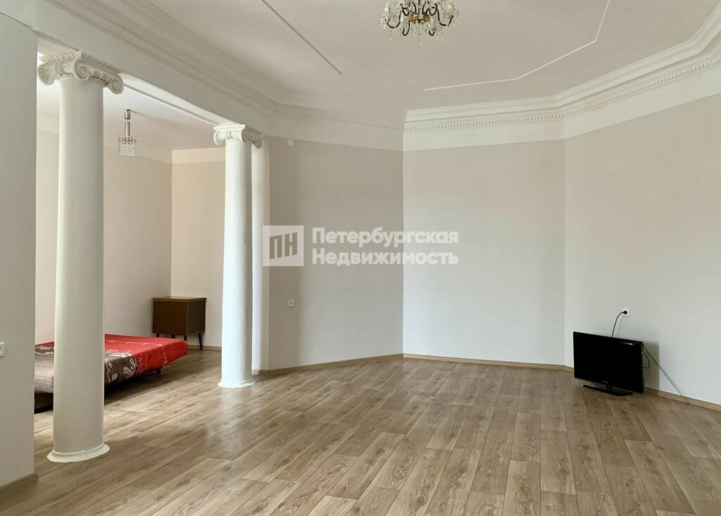 светлый зал с изящными колоннами и просторным альковом, который может служить спальней.