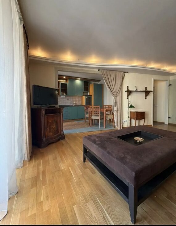 В квартире сделан современный евроремонт и идеальное объединение зоны кухни и гостиной, а так же лоджии , что делает квартиру просторной и максимально светлой .