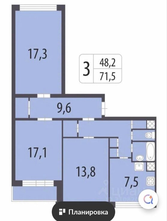 3-комнатная квартира: Санкт-Петербург, улица Кржижановского, 5к4 (71.5 м²)