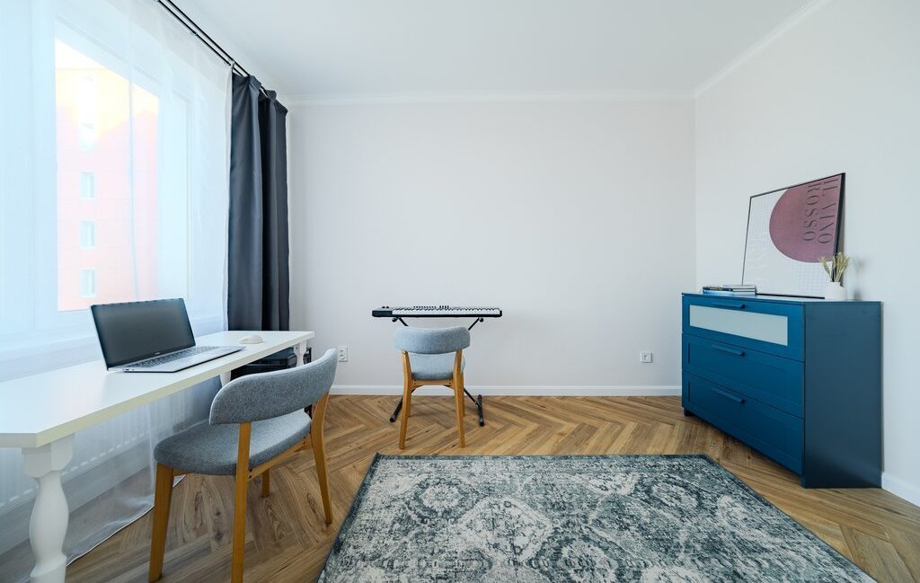 Кабинет / детская (на выбор): сейчас с синтезатором, диммируемая люстра. При необходимости также обсуждаем доукомплектование кроватью.