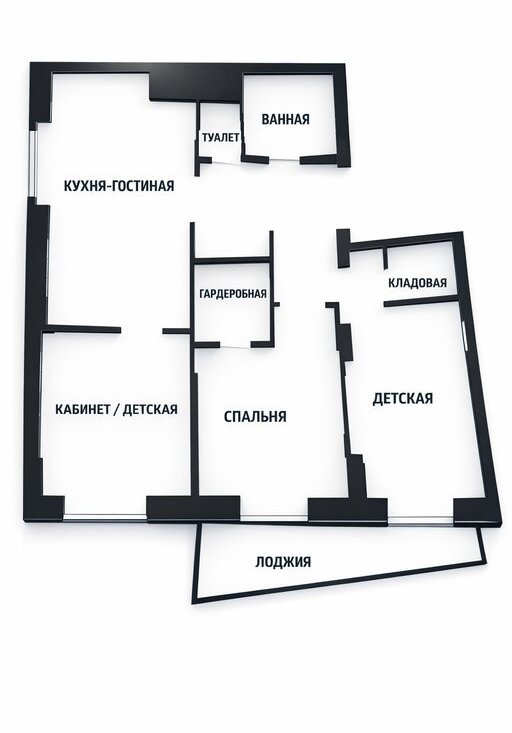 Евро-4: три комнаты + кухня-гостиная + гардеробная
