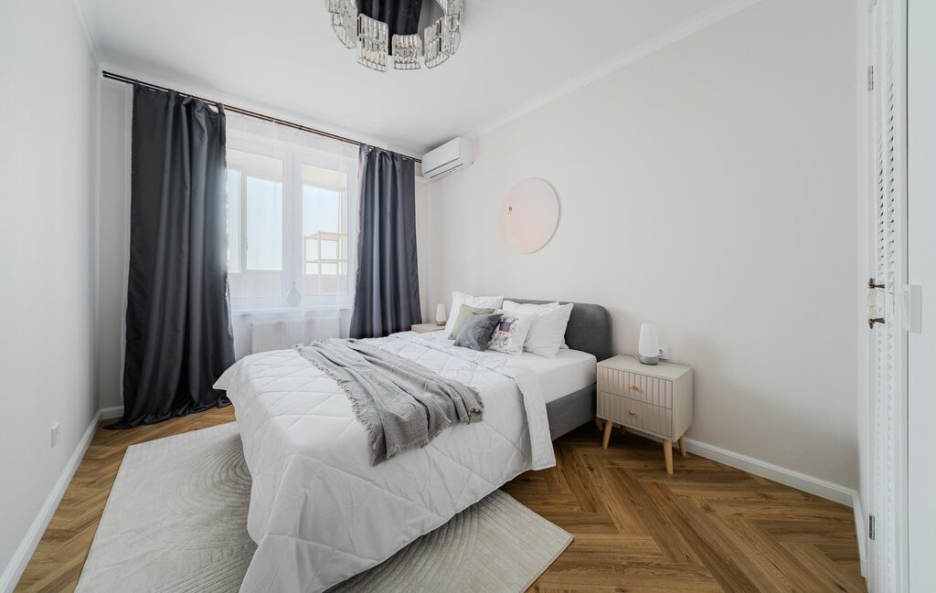 Детская: кондиционер, диммируемая люстра. Кровать можем докупить в счёт аренды.