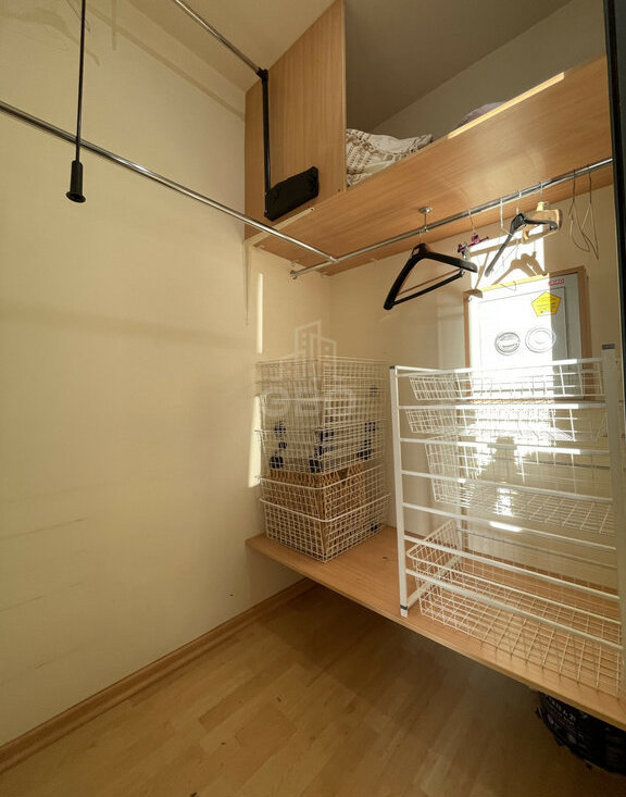 В квартире много мест для хранения, есть отдельная гардеробная. Санузел совмещенный, установлен бойлер.