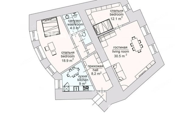 3-комнатная квартира: Санкт-Петербург, улица Пестеля, 1/12 (88.4 м²)