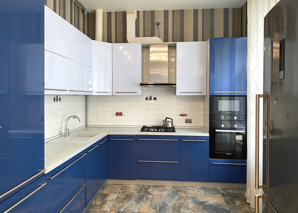Большая кухня-гостиная упакована современной бытовой техникой,
