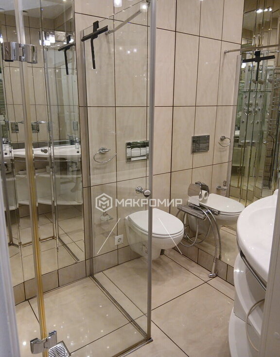Малонаселенная парадная, зеленый двор. Квартира с двухсторонней планировкой. Большая прихожая, кухня-гостиная с балконом, три спальни, 2 санузла – ванная и душевая. Квартира оснащена всевозможной бытовой техникой; установлены кондиционеры, теплые полы, видеодомофон. Высокие потолки, две гардеробные.