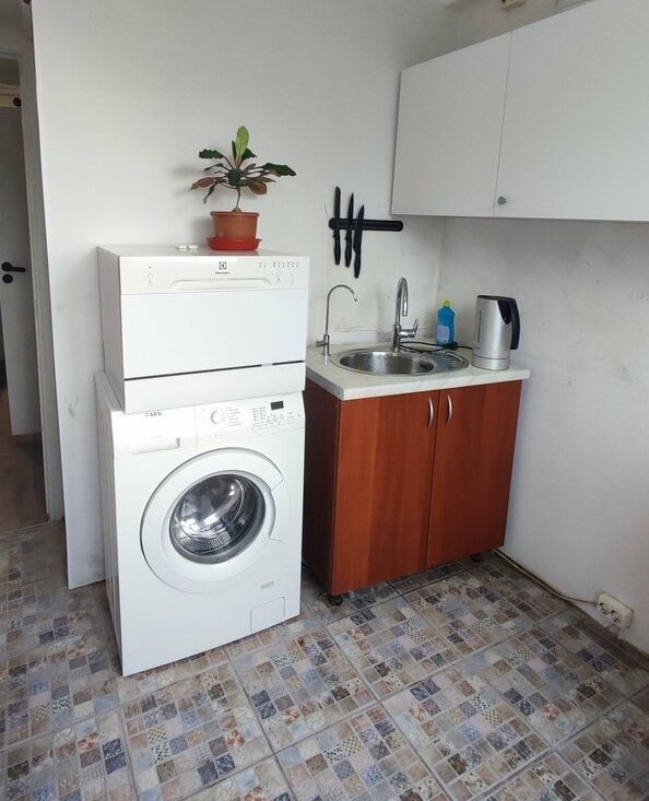 На кухне есть стиральная машина и посудомоечная машина.