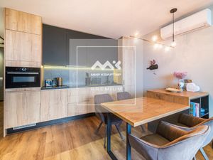 Две изолированных спальных комнаты, одна из которых с отдельной гардеробной. Санузел раздельный. В ванной комнате предусмотрен теплый пол. Есть кондиционеры.