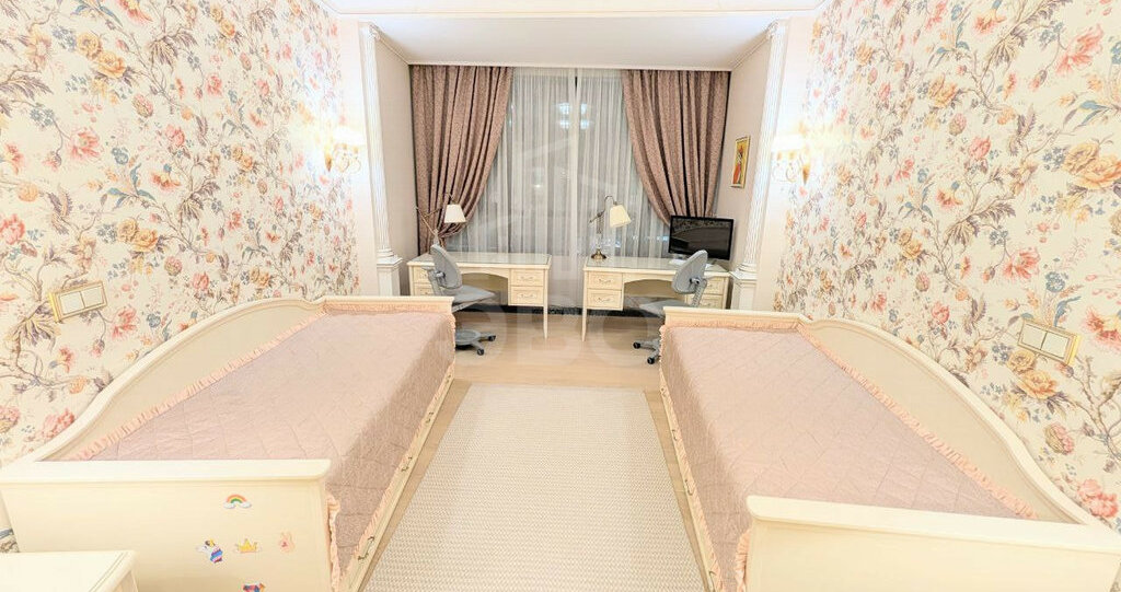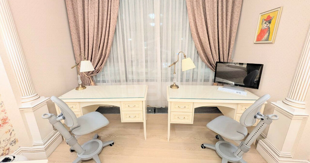 Пространство, созданное для гармоничного развития двоих детей. У каждого — личная, эргономично организованная территория с письменным столом, ортопедическим стулом и полноценным местом для хранения. Панорамное окно наполняет комнату светом.