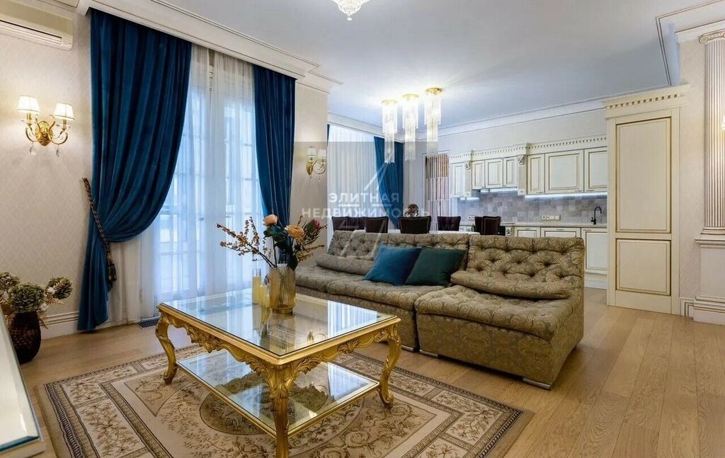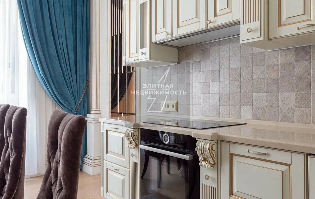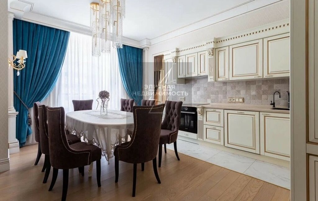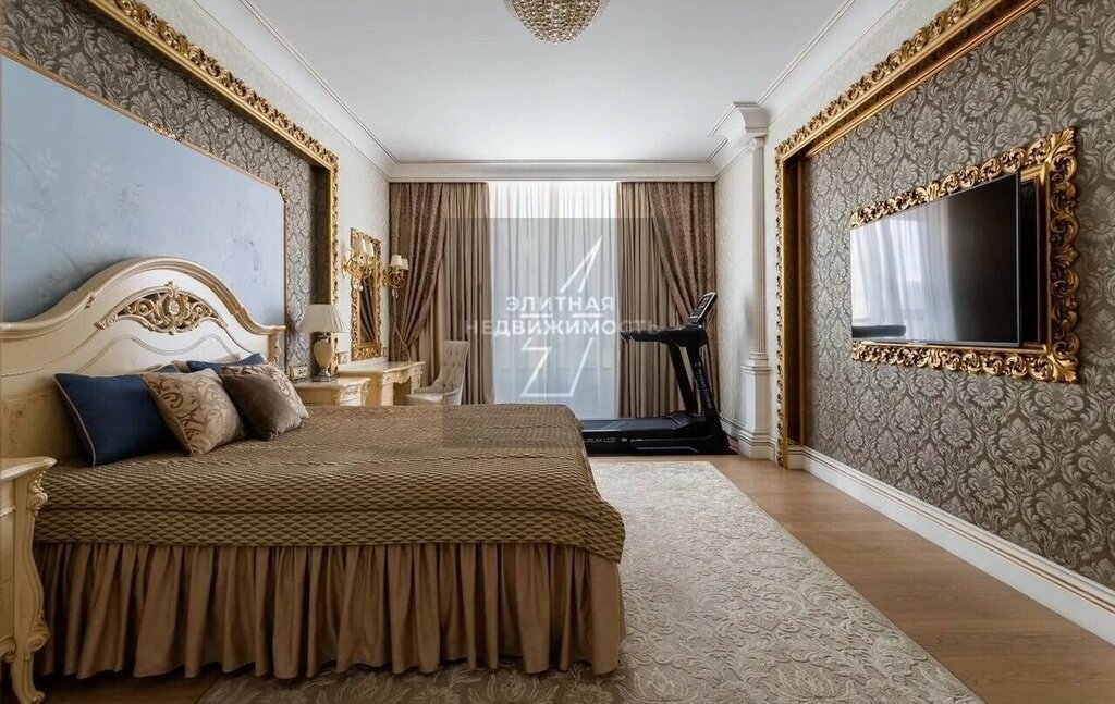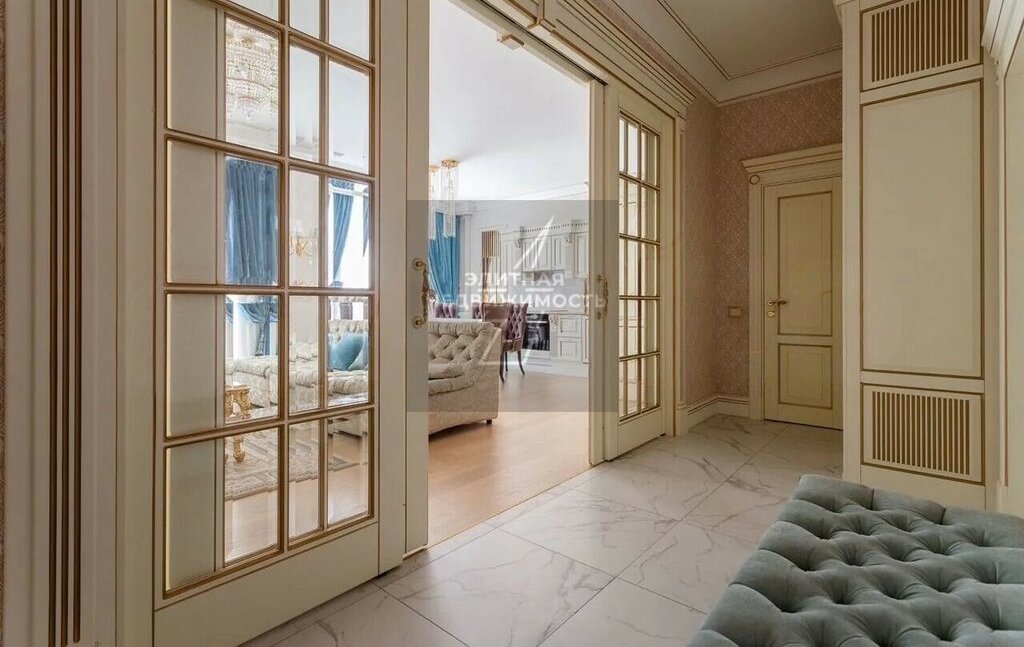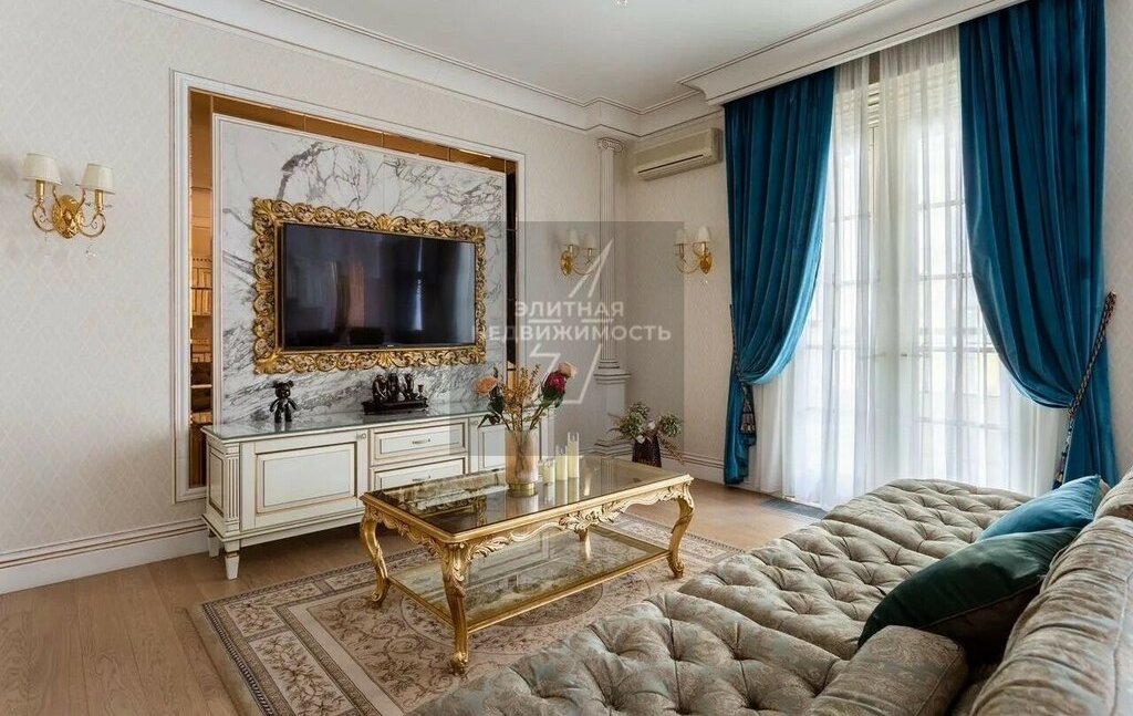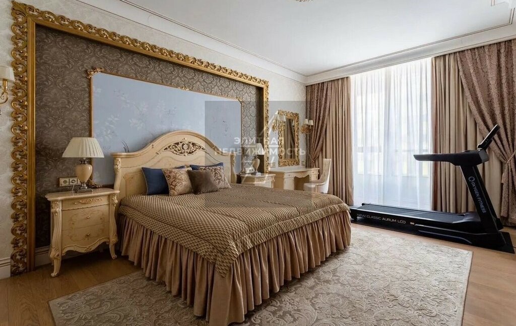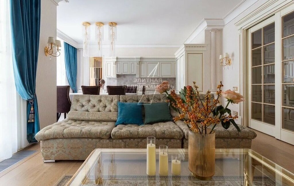• Интерьер выполнен по авторскому проекту в классическом стиле. Высота потолков — 3 метра, установлены панорамные окна.