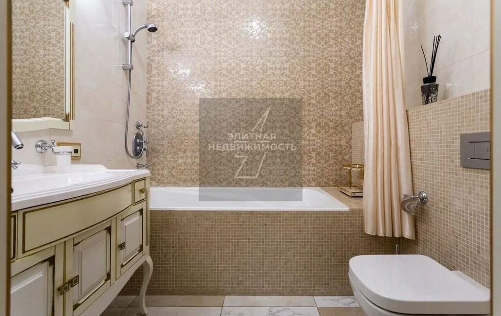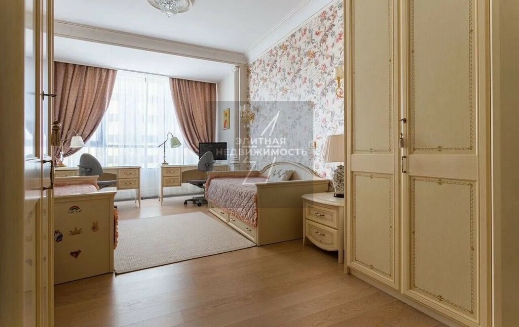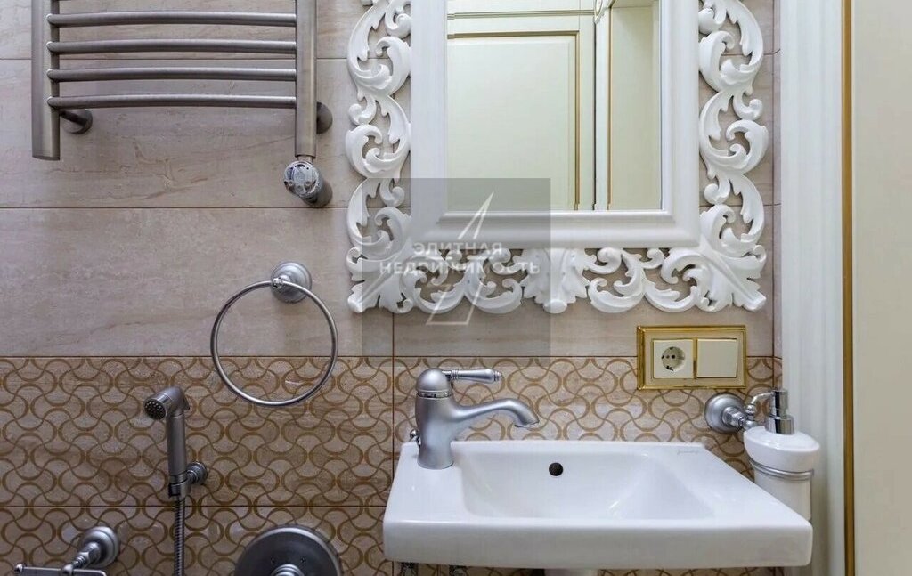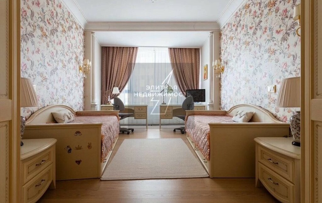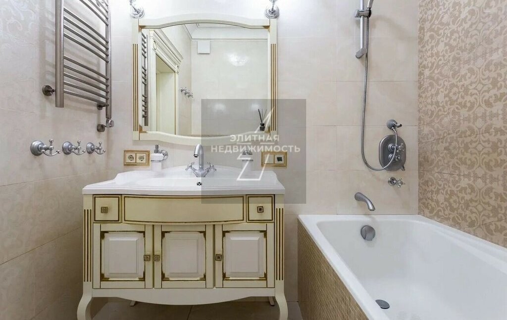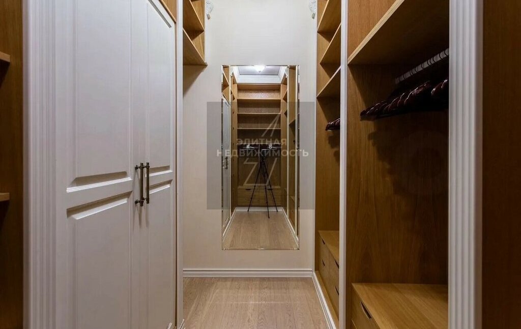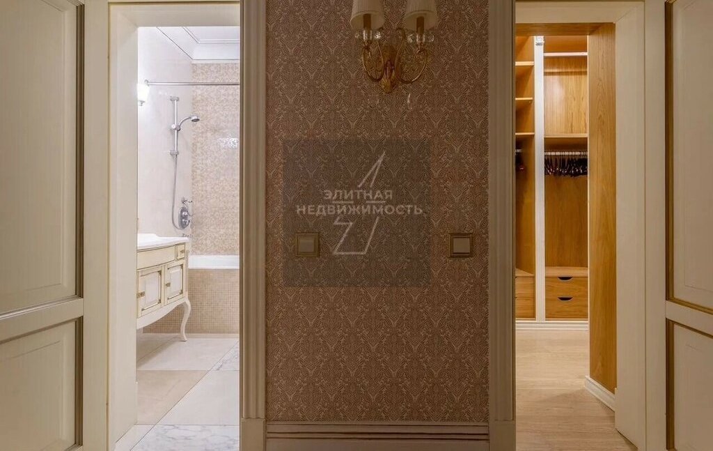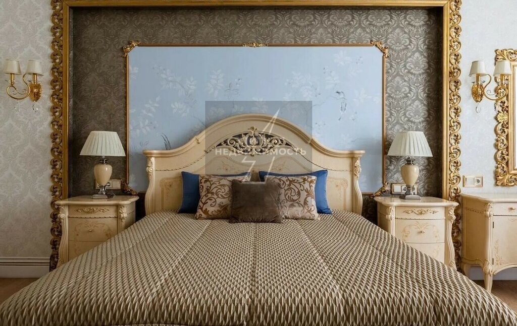 • Интерьер выполнен по авторскому проекту в классическом стиле. Высота потолков — 3 метра, установлены панорамные окна.