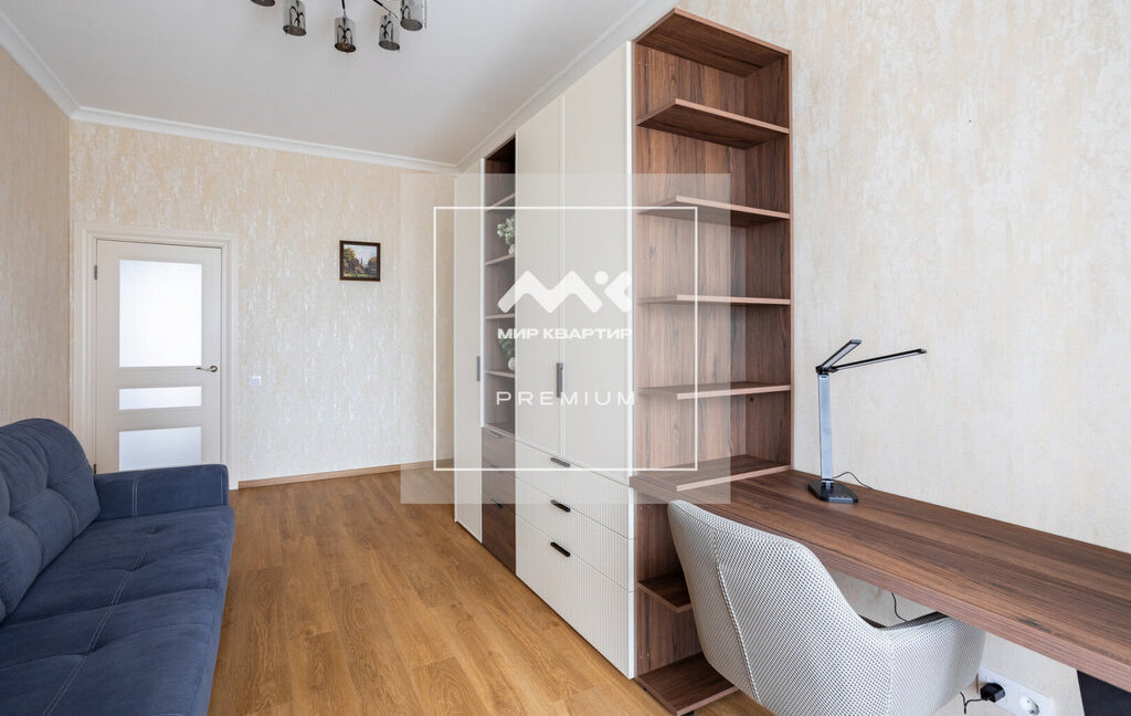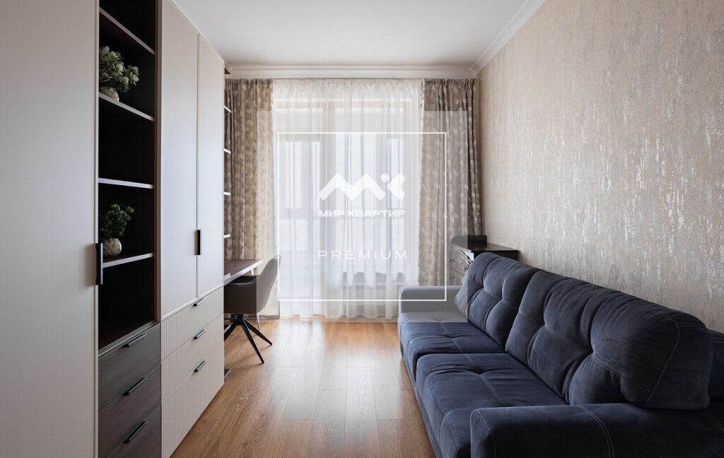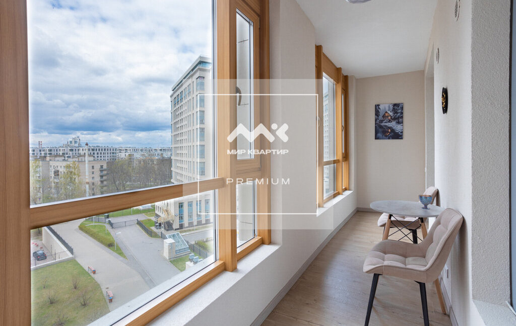 — Просторная гостиная (17кв.м) и кабинет (17кв.м) объединены широкой утеплённой лоджией с панорамным видом на город, и Лахта‑центр