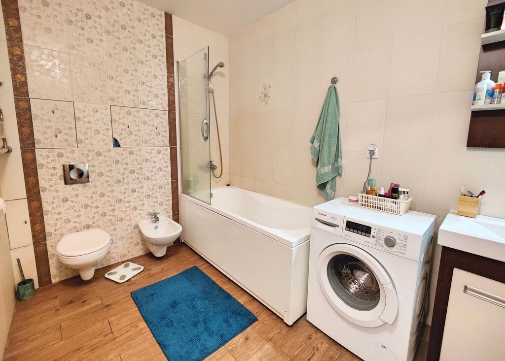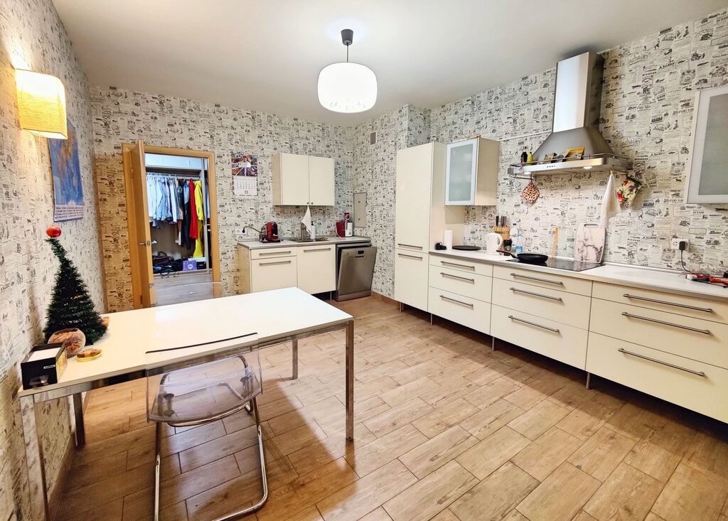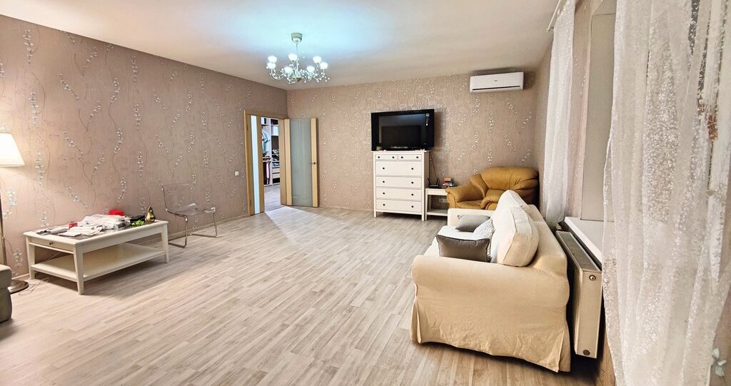 В квартире есть все необходимое для комфортного проживания - двухспальная кровать, встроенный шкаф-купе, ЖК ТВ, встроенная кухня с обеденной зоной, посудомойка, холодильник, грамотная планировка, в каждой комнате кондиционер, огромная панорамная лоджия на две стороны - всё делали для себя. Фото не совсем удачные, снимали в вечернее время, есть ещё дополнительные фотографии по вашему запросу.
