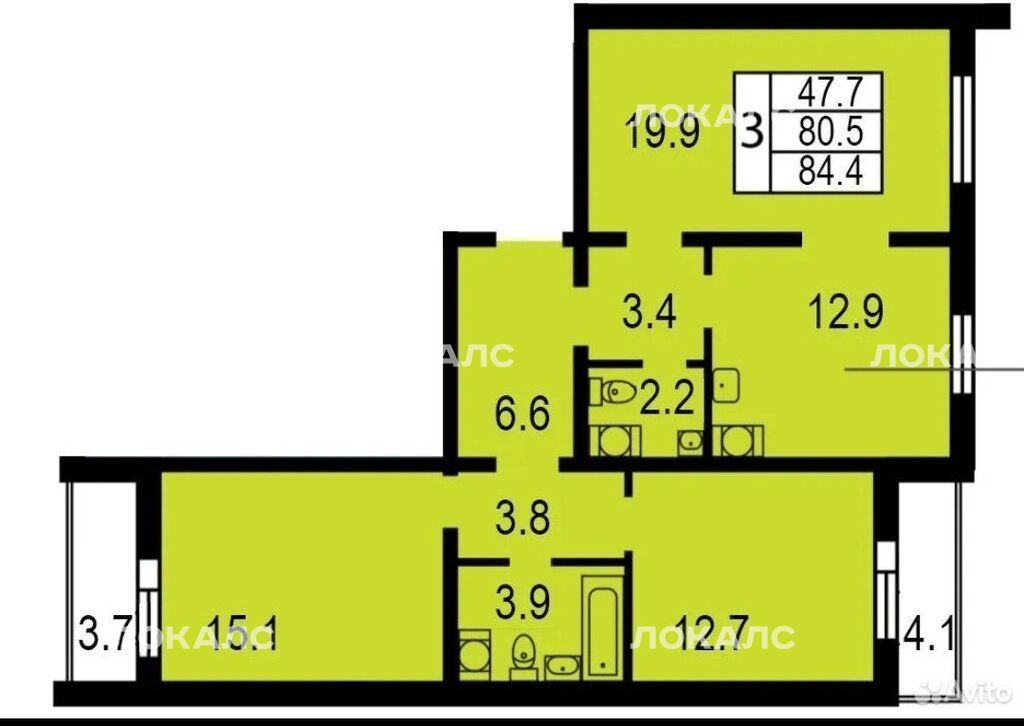 3-комнатная квартира: Санкт-Петербург, Витебский проспект, 101к4 (80 м²)