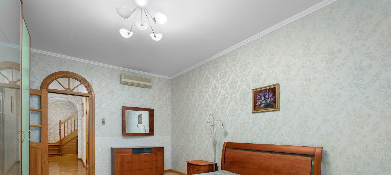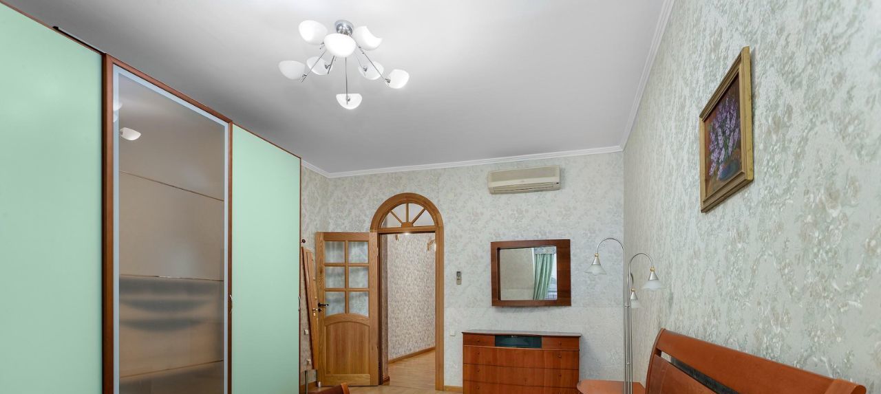 спальня 20 кв.м: мебельный гарнитур, кондиционер, двуспальная кровать