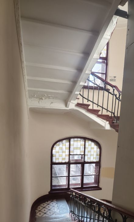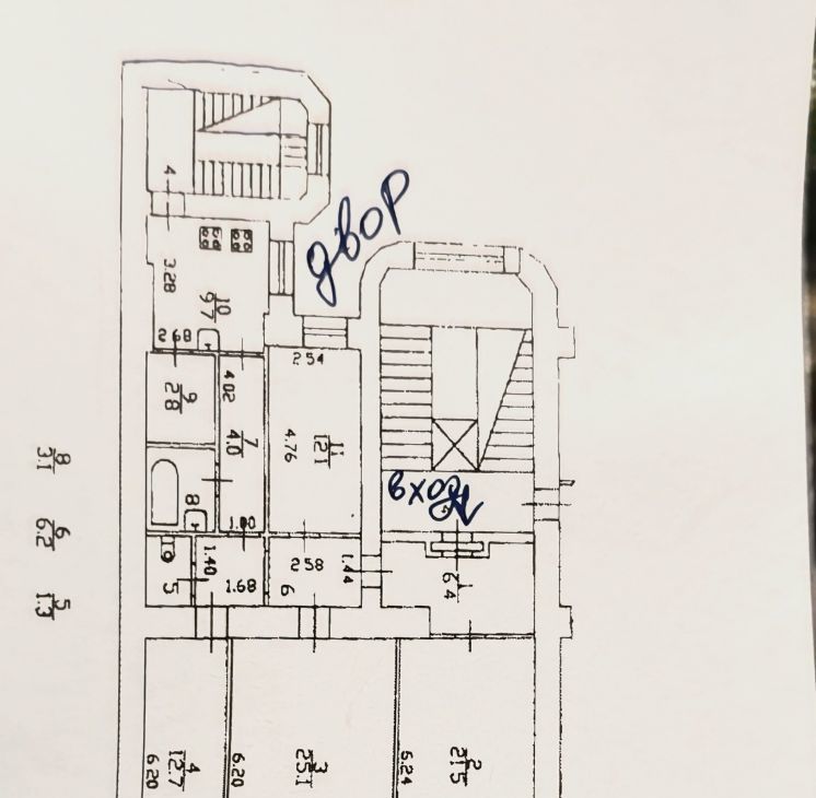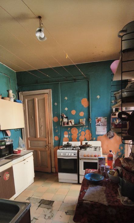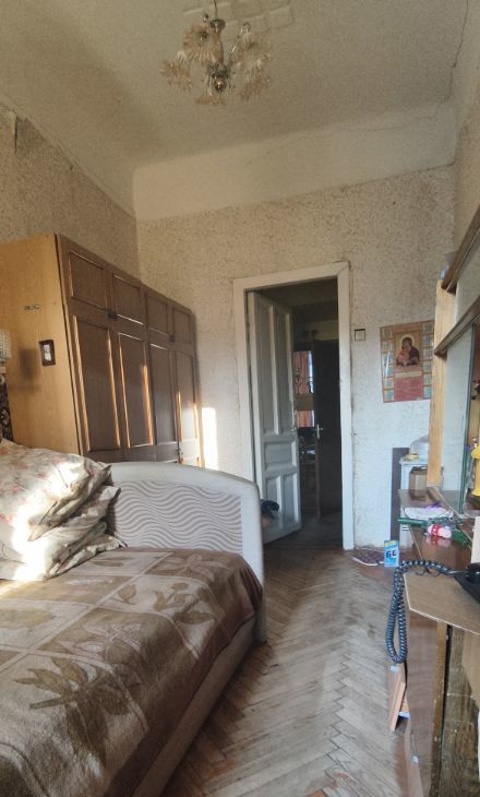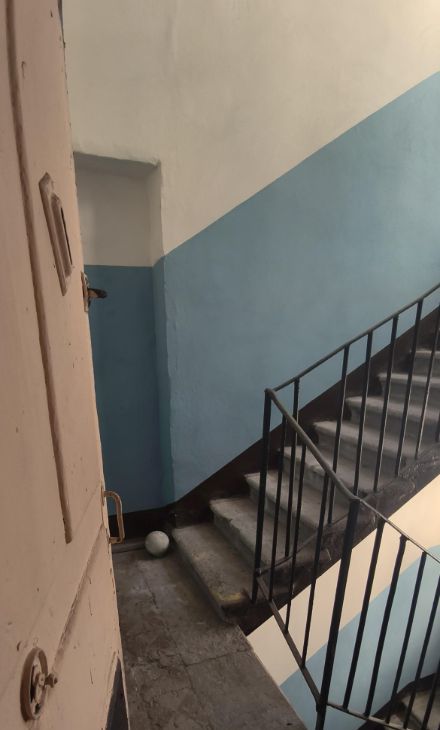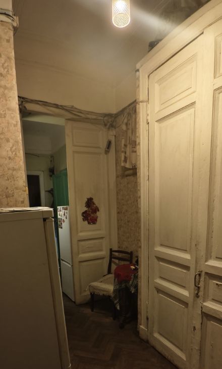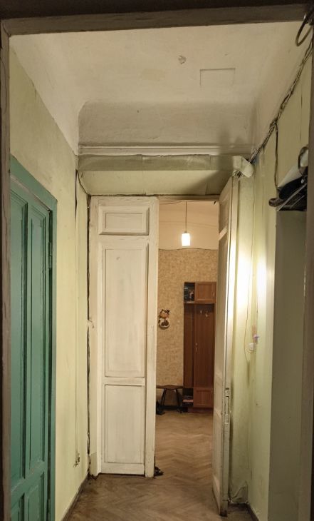 В квартире 4 прямоугольных комнаты метражом (12.10+21.5+12.7+25.10). Большой коридор, туалет, ванна, большая кладовка, есть дверь на вторую лестницу.