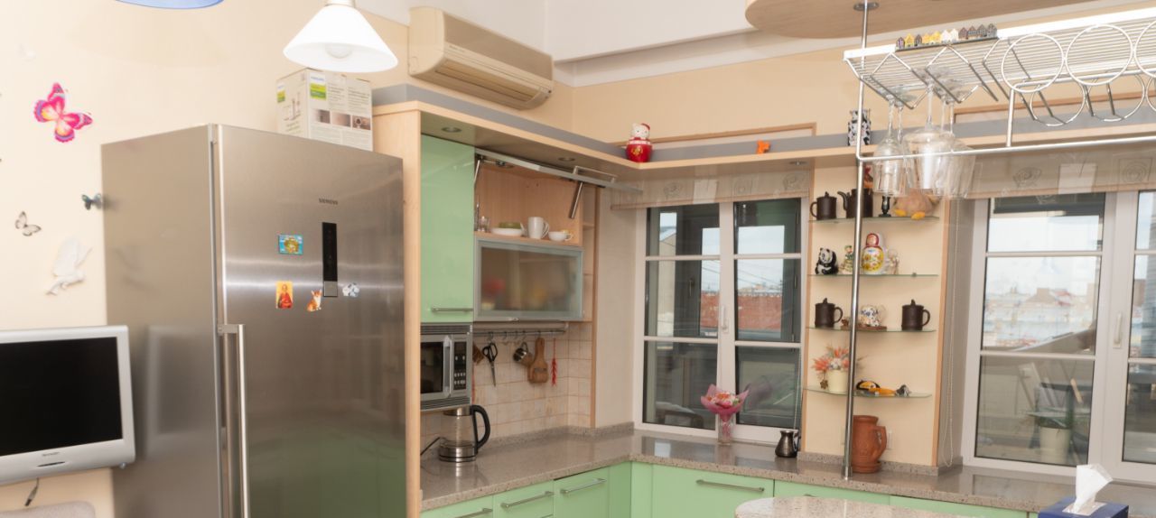 В каждой комнате есть кондиционер, помимо этого в квартире два холодильника, стиральная машина в бытовке и посудомойка на кухне.