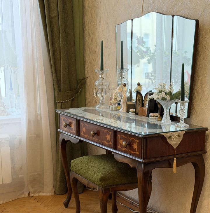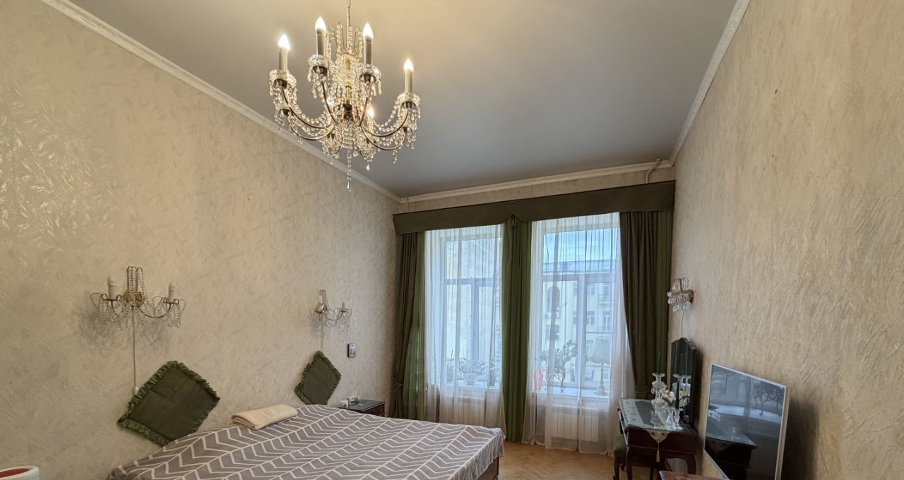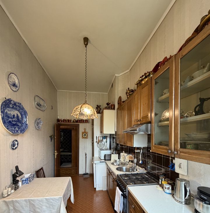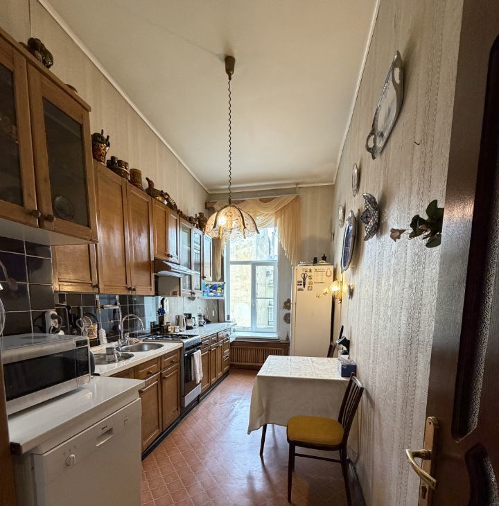 Квартира полностью готова к проживанию, оформлена в классическом стиле с историческими антикварными предметами интерьера. Оснащена необходимой мебелью и техникой. Вашему вниманию предлагаются две спальни, большая кухня и просторная гостиная. Для комфортного размещения вещей в квартире предусмотрена гардеробная, также возможно размещение хозяйственного инвентаря. Есть антресоли. Санузел раздельный.