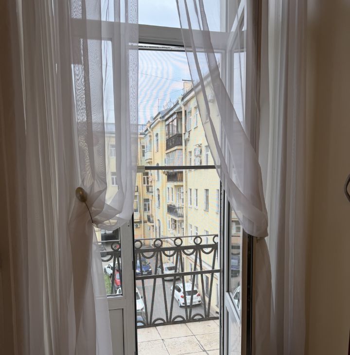 Рабочий кабинет оснащен балконом с видом во двор, что позволяет работать в тишине.