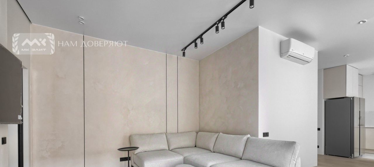 Просторная кухня-гостиная с уютным диваном (45 м²)— место для семейных ужинов и дружеских посиделок.