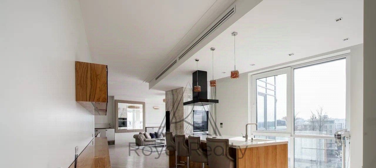 -Просторную кухню -гостиную с камином, полностью оборудованную техникой премиум-класса;