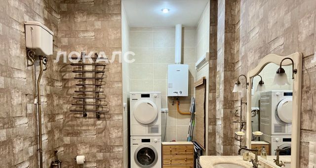 Основной санузел оборудован стиральной и сушильной машинами, предусмотрены системы хранения