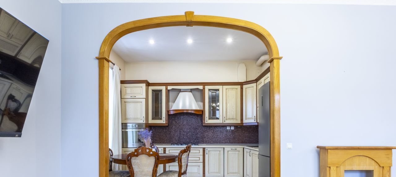 • Элегантные арочные проёмы, красивая деревянная лестница между этажами