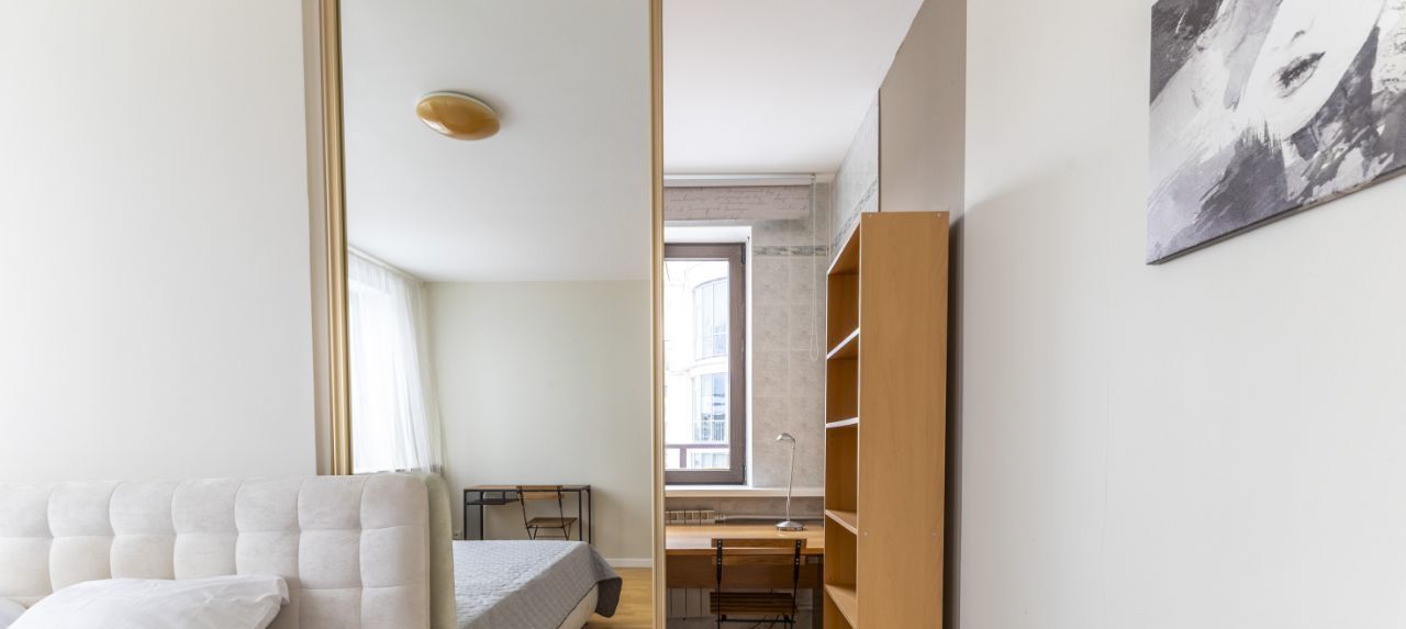 Сдаётся светлая двухуровневая квартира с прямым видом на акваторию Средней Невки и Елагин остров. Дом расположен в тихой части Крестовского острова - одной из самых востребованных локаций Санкт-Петербурга.