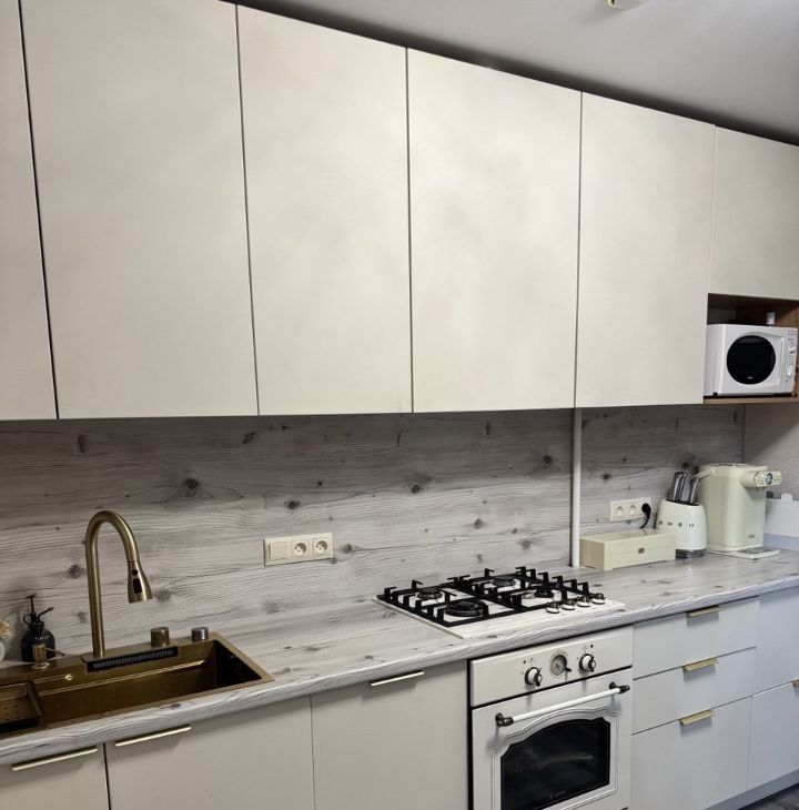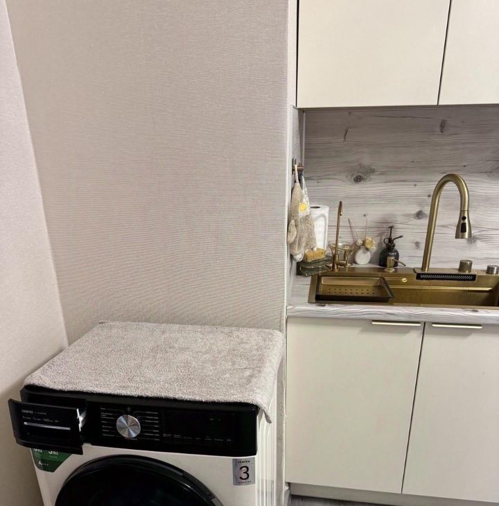 На кухне в наличии термопот, газовая плита, духовой шкаф, микроволновая печь, холодильник, посудомоечная и стиральная машины, а так же посуда.