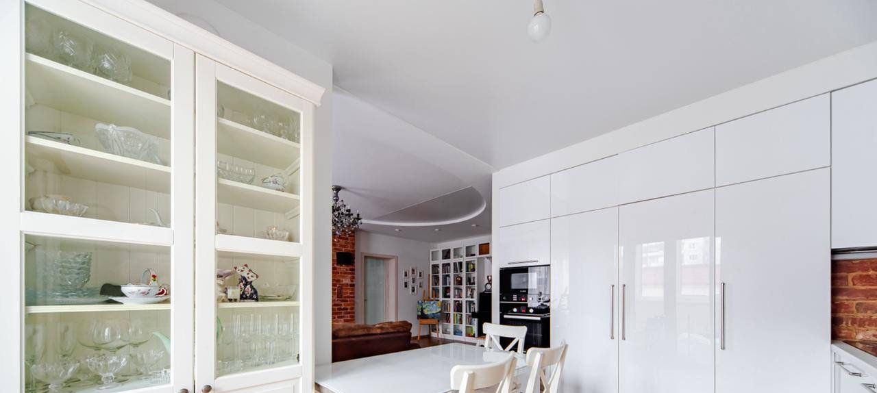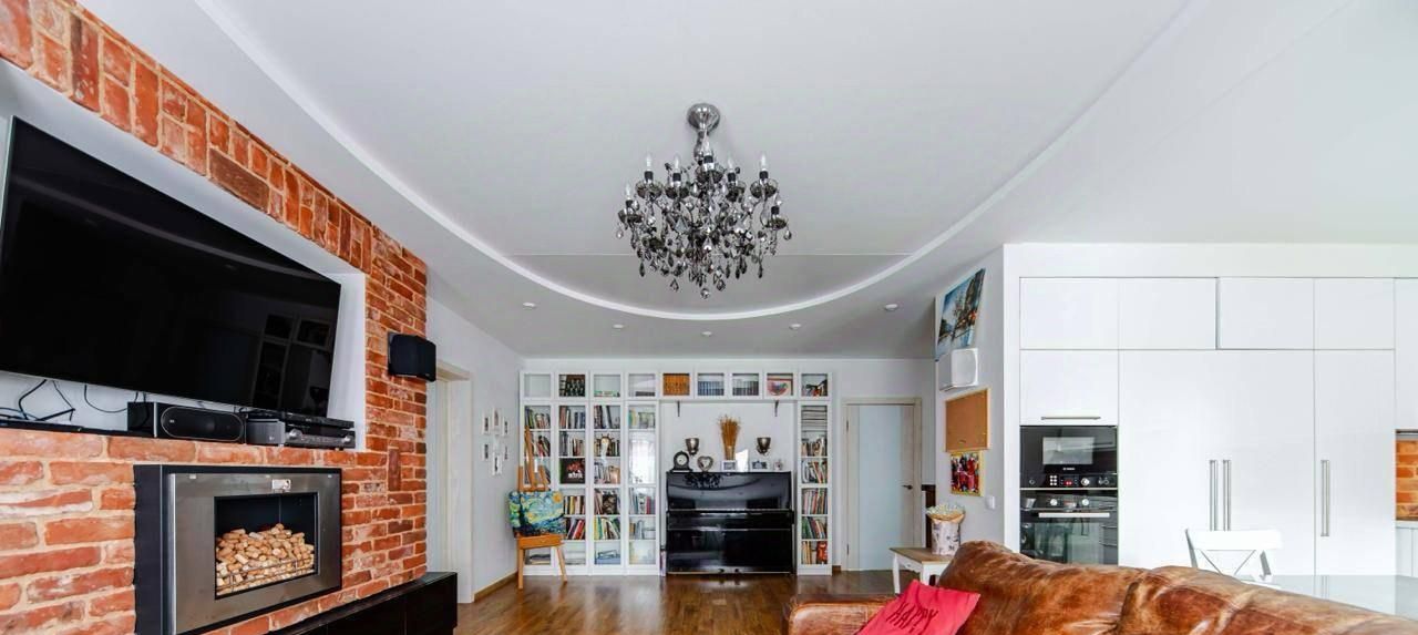 Кухня-гостиная — полноценная кухня с продуманной эргономикой, большая обеденная зона и гостиная с большим телевизором и биокамином.