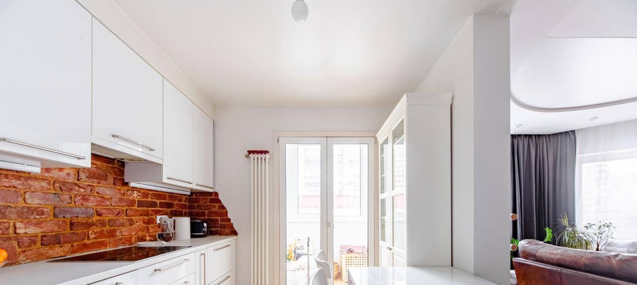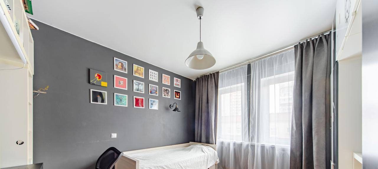 Квартира светлая, двухсторонняя. Из кухни-гостиной и одной из детских спален открывается вид на благоустроенный двор с новыми детской и спортивной площадками, а окна второй стороны обращены в сторону улицы и на Парк Декабристов.