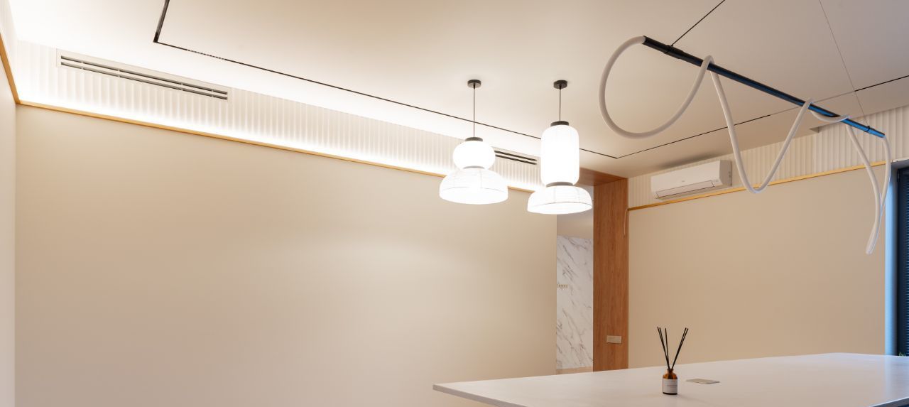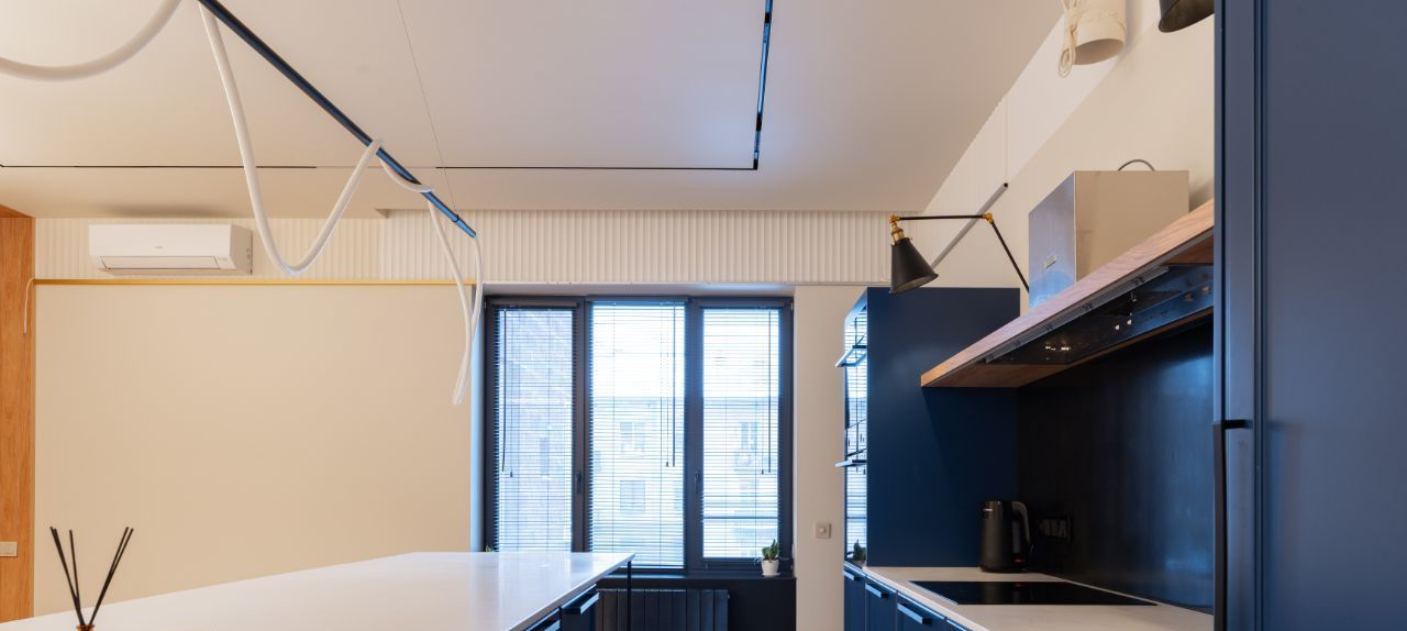 • Мультизональная система Fujitsu и приточно-вытяжная вентиляция с рекуперацией. Установлены бесшумные канальные вентиляторы Soler & Palau для мощной и тихой вытяжки в санузлах и на кухне. Система электрокарнизов в жилых зонах.