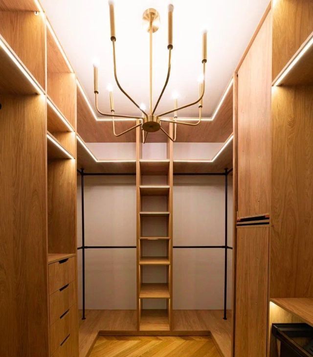 • Натуральный паркет елочка в общих зонах, инженерная доска в спальне, керамогранит, изящные латунные вставки в отделке стен.